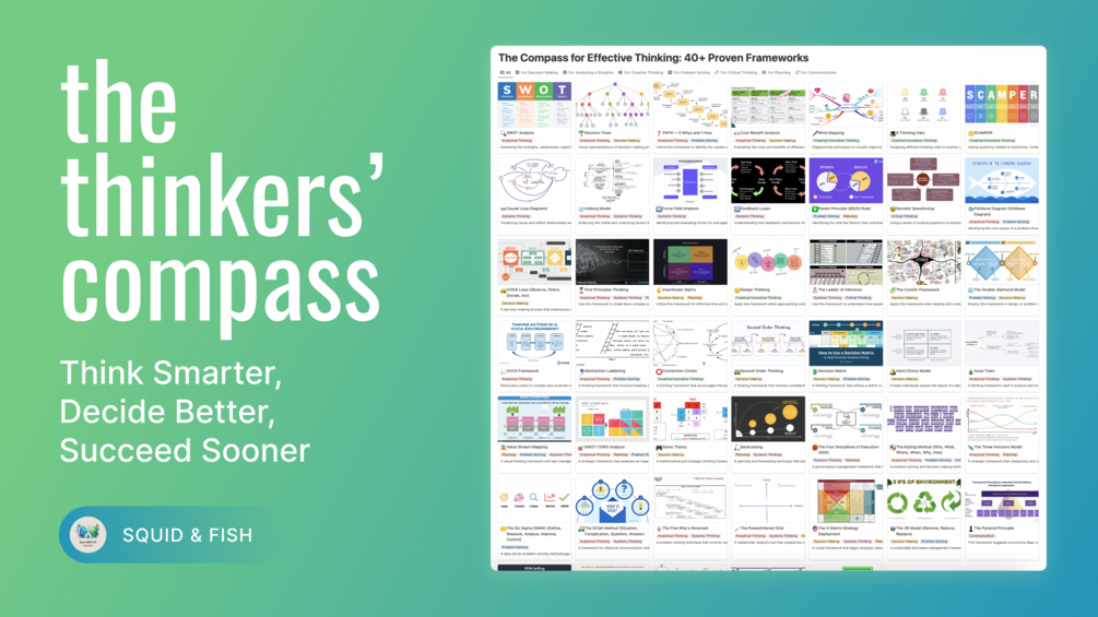 Unlock the full power of your mind with The Thinkers' Compass. Enhance decision-making, problem-solving, and creative thinking skills using 40+ diverse thinking frameworks. Gain a competitive edge in today's fast-paced world.